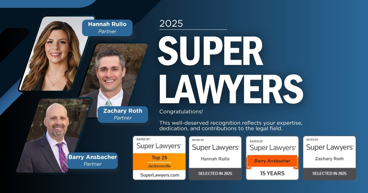 #SuperLawyers #RisingStars #LegalExcellence #AnsbacherLaw #FloridaLaw #TopLawyers #LeadershipInLaw #FloridaAttorneys #JacksonvilleLaw #MiamiLaw